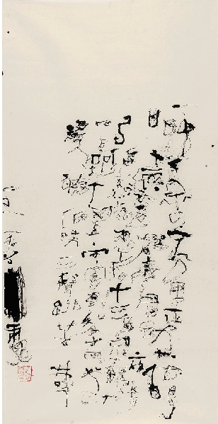 石虎 书法 释文:《信天游》 正月里来正月正,大花眼眼两盏灯,弯弯眉毛两张弓,你说心疼不心疼,十三上定亲十四上迎,十五上守寡到如今,高哭三声就人人惊,低哭三声就跳苦井哎!