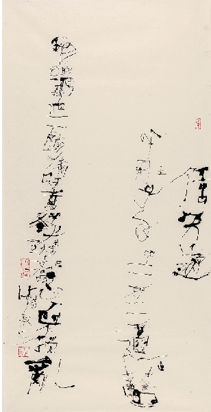 石虎 书法 释文:《信天游》 羊肚子手巾三呀三道道蓝,我的那个二妹子真呀真好看,你把哥哥心儿搅乱。