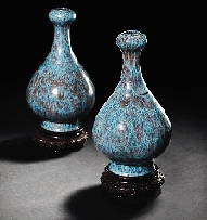 清雍正 炉钧孔雀毛釉蒜头瓶 保利香港