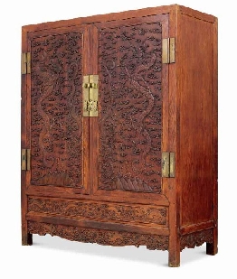 清早期 黄花梨雕龙纹大方角柜