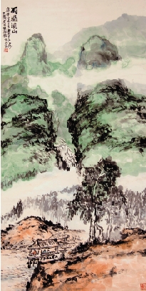 朱屺瞻 雨过溪山 135×70cm 1990年