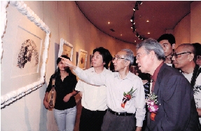 2008年9月,靳尚谊、范迪安与张立辰合影