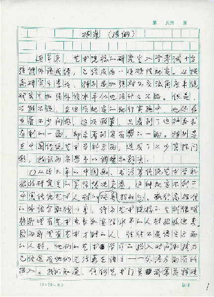 关于“在晋升中将外语考试改为古代汉语和中国传统文化的考试”的提案(提纲)手稿