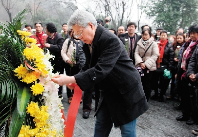 2012年张立辰带学生江南访师问学时祭拜潘天寿诗亭