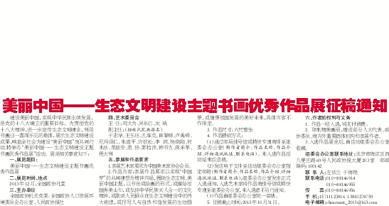 美丽中国——生态文明建设主题书画优秀作品展征稿通知