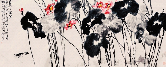 章月中 群荷观鱼