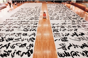 2007年,王冬龄于杭州中国美院历时4天多,创作宽4.95米,长37.5米的巨幅大字草书《老子·五千言》
