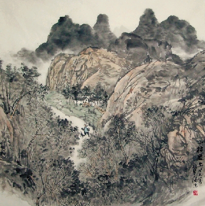 胡粤海(江苏沐阳) 小村道上 中国画
