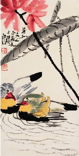 齐白石(1864-1957) 荷花鸳鸯 69×35cm 设色纸本 镜片