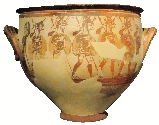 战士出征行列图的红绘式陶瓶,红色不止一种,丰富了画面的色调。