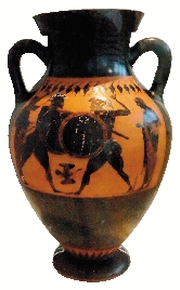 狄奥米德斯与伊亚斯的决斗图案的黑绘式陶瓶。