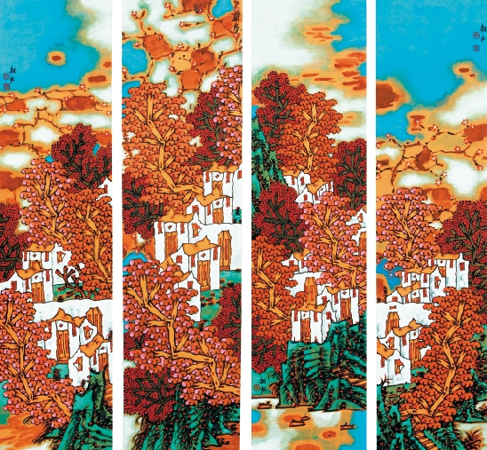 胡朝水 秋霁 136×34cm×4 纸本水墨