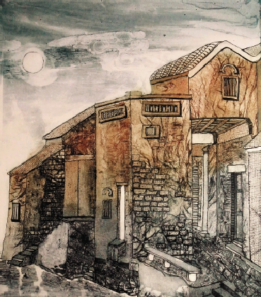 刘磊(广东顺德容山中学教师) 水乡月夜 综合版画
