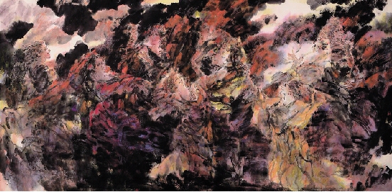 黄泽森 新疆风情 彩墨纸本 196×500cm 2007年