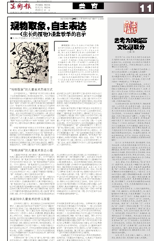 活动中,平湖实验小学赵永华老师执教的《生长的植物》一课,引导小学生依靠个人独特的直觉观察与体验来表现植物,旨在通过这样的教学锻炼和培养学生的直觉体验能力,课堂教学指导重点放在激发学生直觉的观察感知上,并经过体验之后改变传统的植物写生方式,改变学生原有的线条表现性,引发学生直觉力创造性的表现方法。