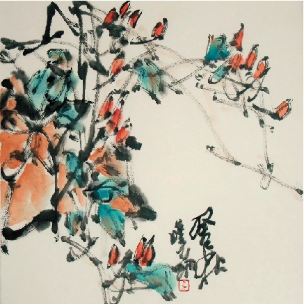 李晓明 水墨重彩写意花鸟系列之二 68×68cm