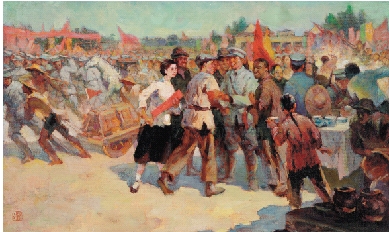 吕洪仁 欢迎铁军 42.0×71.5cm