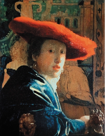 维梅尔 戴红帽的少女 华盛顿国家画廊
