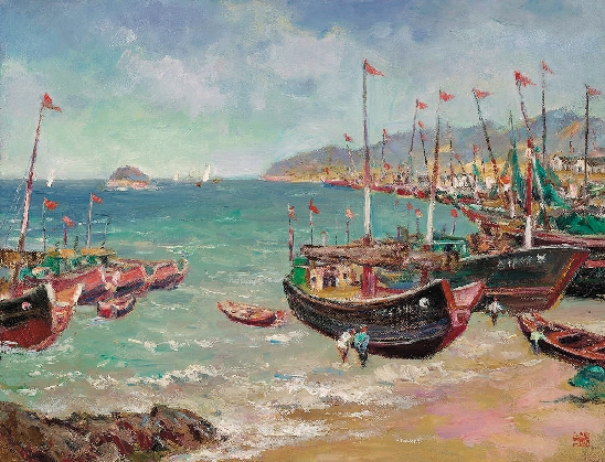 吕洪仁 舟山渔区的机帆船时代 布面油画 尺寸:50×60cm 约2.7平方尺