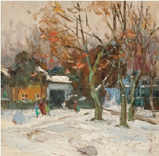 吕洪仁 78年的柳浪闻莺公园 纸板油画 1978年作 尺寸:25×26cm 约0.6平方尺