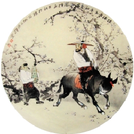杨俭朴 探梅图 直径68cm