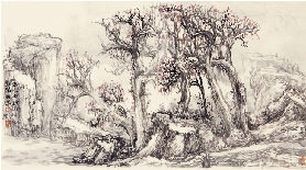 张伟平 山水二 彩墨纸本 34×68cm 2013年