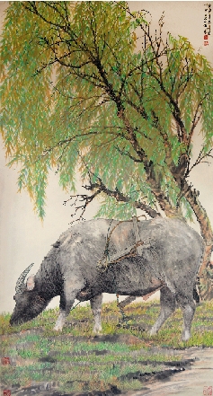 李牧 柳荫牧牛图 97×179cm
