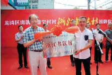 7月26日,浙江省书法家协会主席鲍贤伦为龙湾区海滨街道宁村村“浙江书法村”授牌。
