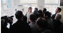 10月24日,浙江省书法家协会副主席兼秘书长赵雁君为常山县东乡村“浙江书法村”的书法爱好者点评作品。