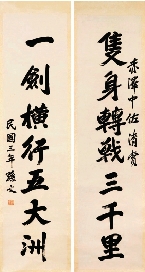 孙中山 行楷七言联 133.5×33.5cm×2 1914年作