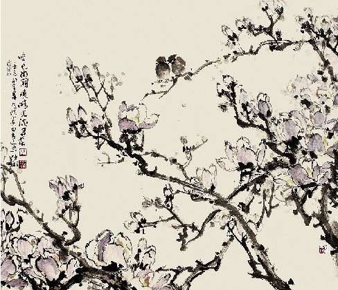 ▼陈仕彬 玉兰双禽图 50×70cm
