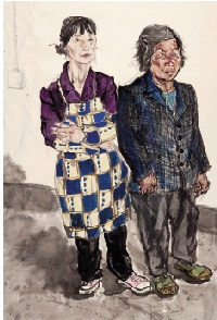 韩京雷 农家乐的炒菜阿姨们 水墨纸本 2012年