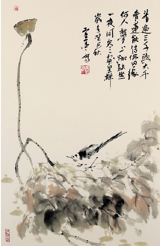 胡雪亭 鸟栖荷香