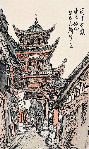 范扬 阆中古镇中天楼 64.5×38.5cm