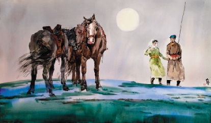 蒋跃 草原夜色美 90×150cm 2013年 水彩