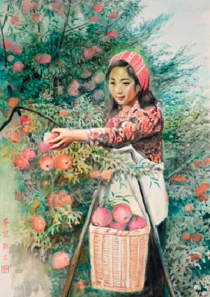 姜庆远 苹果熟了 水彩画