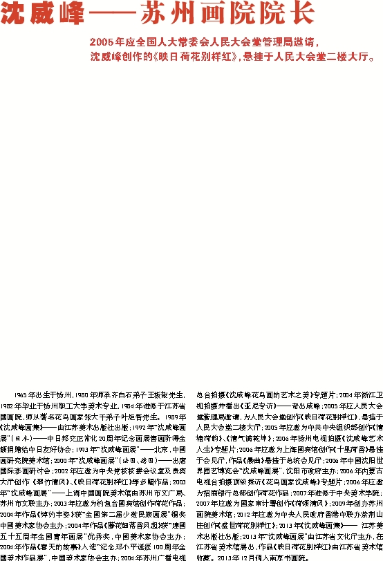 沈威峰创作的《映日荷花别样红》,悬挂于人民大会堂二楼大厅。