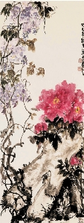 朱萧君 紫藤牡丹 108×47cm