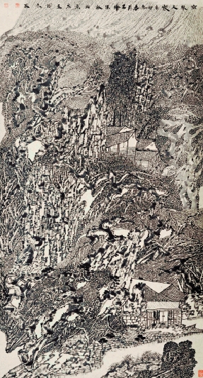 王淦永 密林人家图 180×98cm