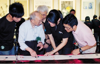 西泠印社副社长刘江教授在该校于唐云艺术馆举办的艺术展览现场指导南岸印社学生