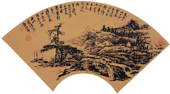 穆家善 天平山上白云泉 焦墨扇面 2013年