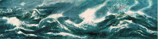 周韶华 虎啸龙吟浪排空 纸本水墨 195×770cm 2007年