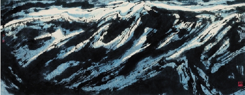 周韶华 莽莽帕米尔 纸本水墨 144×365cm 1998年