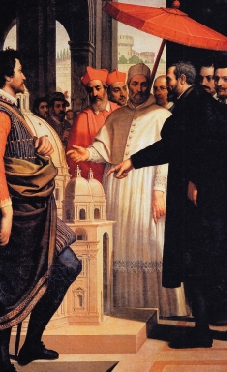 描绘米凯朗琪罗面见教皇提出方案的油画
