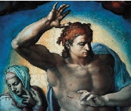 ③《最后的审判》中的耶稣,右手掌心和右肋上还留有伤口。米凯朗琪罗作。