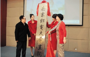 南京军区原副司令员郭锡章将军、南京邮电大学副校长叶美兰教授为“南京邮电大学画院”揭牌