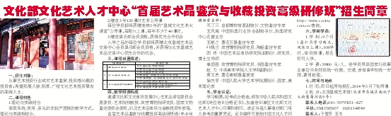 文化部文化艺术人才中心“首届艺术品鉴赏与收藏投资高级研修班”招生简章