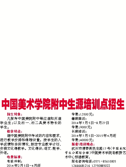 凡报考中国美院附中等应届和历届毕业生;以及初一、初二具美术特长的学生。