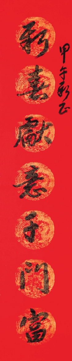 释文:新春献意千门富 快马加鞭万里程