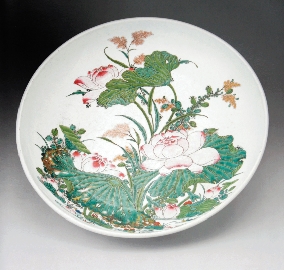 清 雍正“二年试乙号样”款粉彩荷莲纹盘